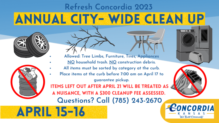 Spring is here, and it is time to “Refresh Concordia!” The City Commission urges residents to prepare their yards and front porches for enjoyment this