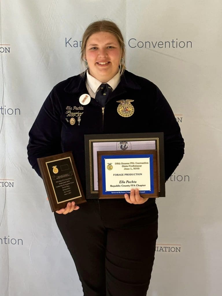 Ella Pachta of Belleville, Kansas, received the “Star Farmer” award at the state FFA convention in Manhattan, Kansas, which took place on June 2nd. Pachta