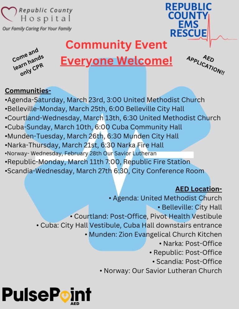 Republic County EMS Holding CPR/AED Classes Throughout the County