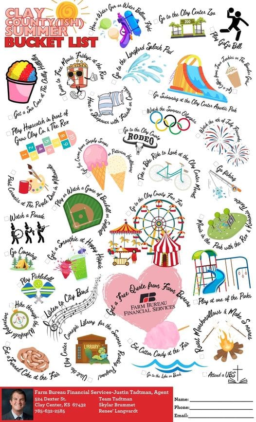 By Quinn O’Hara Reneé Langvardt of Justin Tadtman’s Farm Bureau Financial Services has organized a list of summer related activities for families to complete over