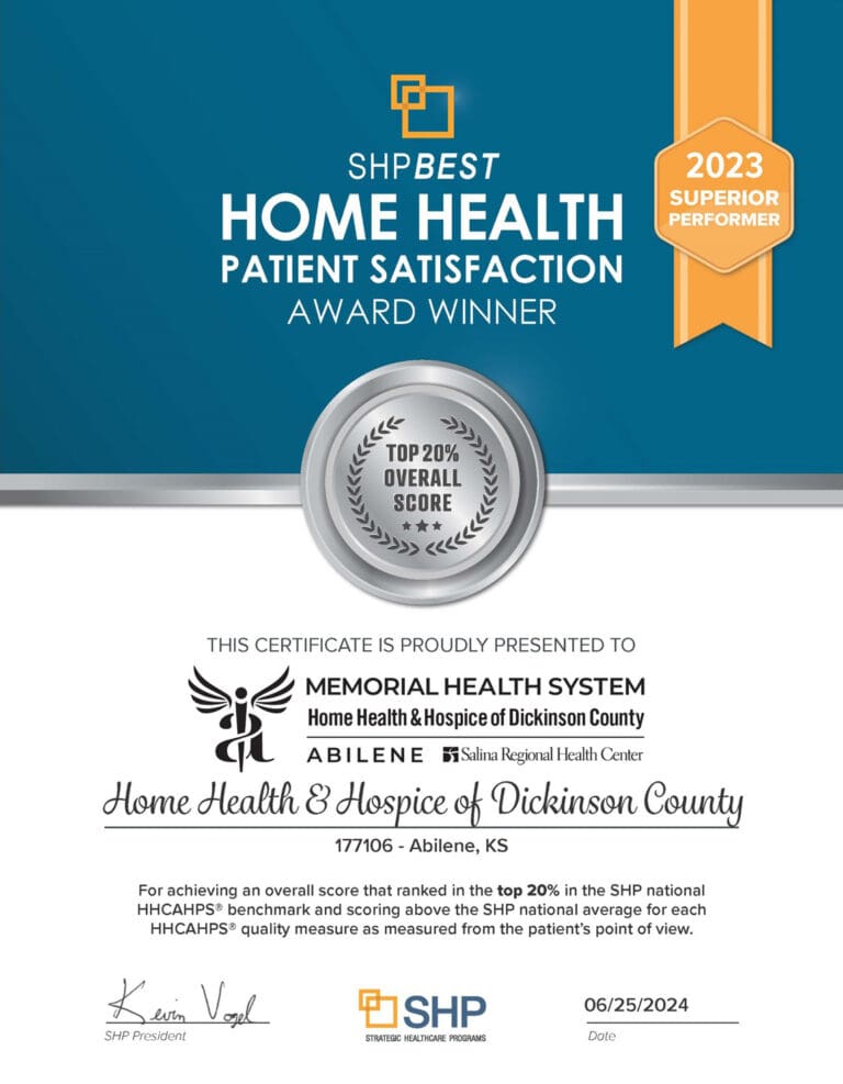 Memorial Health System Release Home Health and Hospice of Dickinson County has been recognized by Strategic Healthcare Programs (SHP) as a “Superior Performer” for achieving