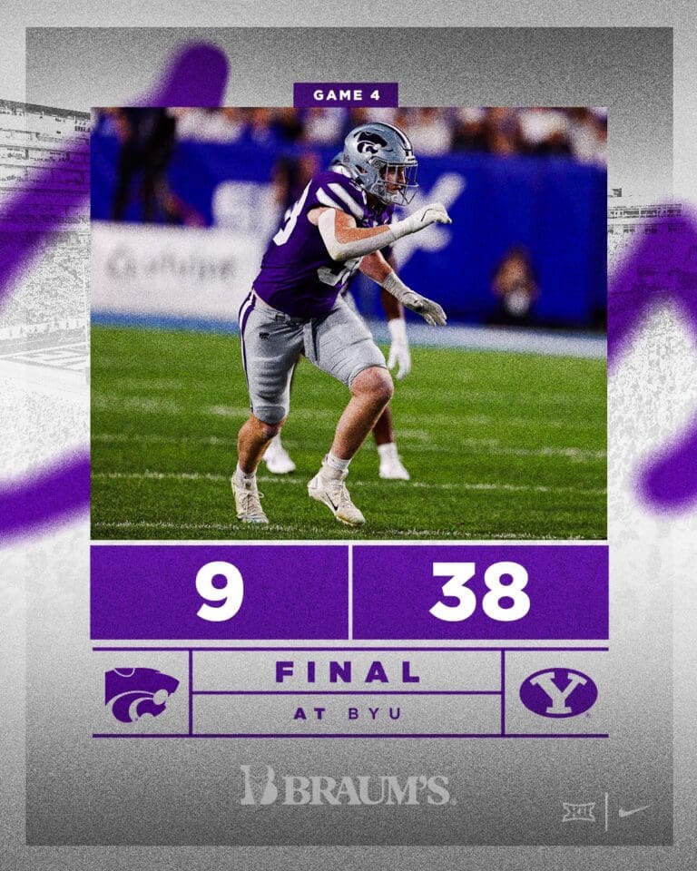 By Jayson Henderson Kansas State suffered its first loss of the season, falling 38-9 to BYU at LaVell Edwards Stadium on Saturday night. The Wildcats,