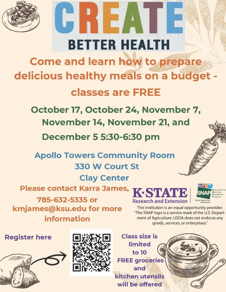 By: Ryan Duey The K-State Extension River Valley District will offer free nutrition classes to people on limited food budgets. The “Create Better Health Program”