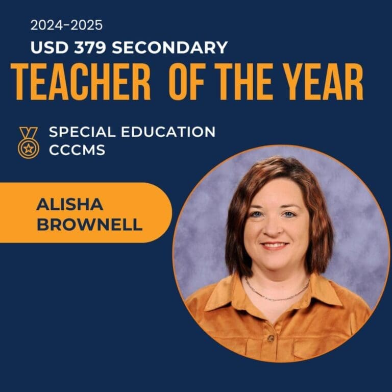 By Payton Tholstrup Alisha Brownell, a Special Education Teacher at Clay Center Community Middle School (CCCMS), has been named USD 379’s Secondary Teacher of The
