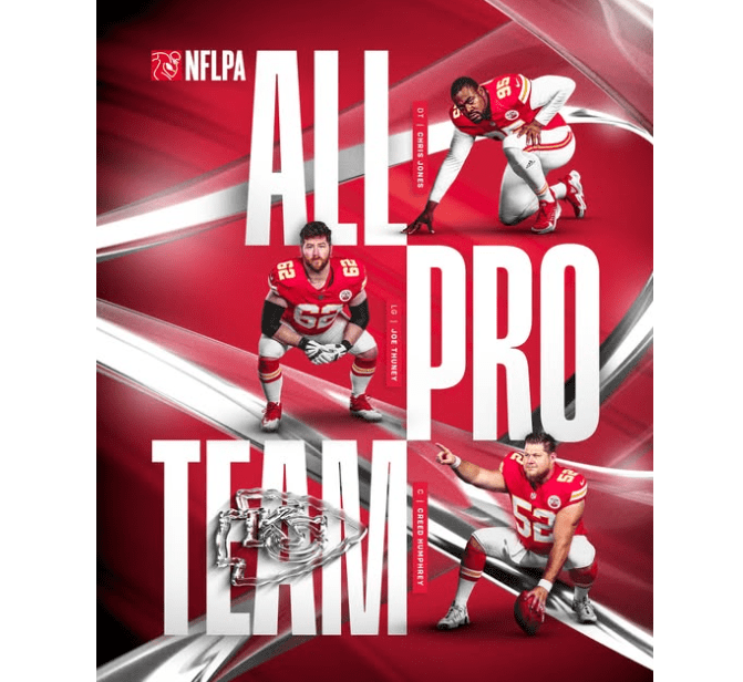 Kansas City Chiefs players Chris Jones, Joe Thuney, and Creed Humphrey were selected for the NFL Players Association All-Pro Team, announced Wednesday. This recognition is
