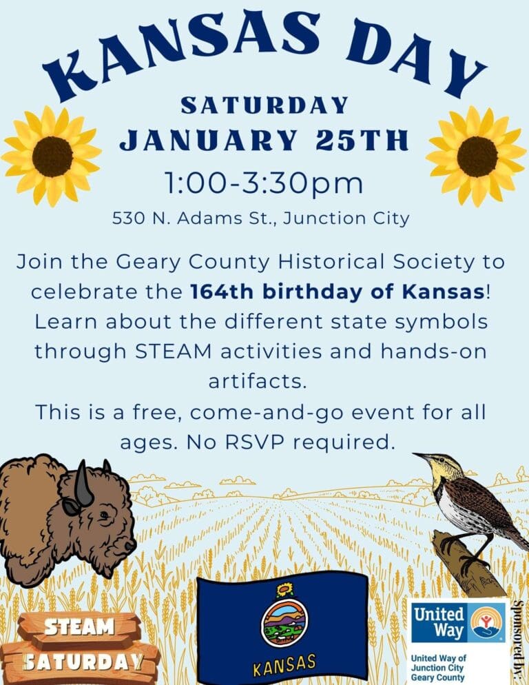 Heather Hagedorn, Geary County Historical Society and Museums The Geary County Historical Society will be celebrating Kansas’s 164th birthday this Saturday, January 25th, at their
