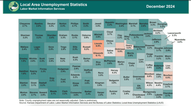Preliminary estimates reported by the Labor Market Information Services Division of the Kansas Department of Labor and the Bureau of Labor Statistics show a seasonally