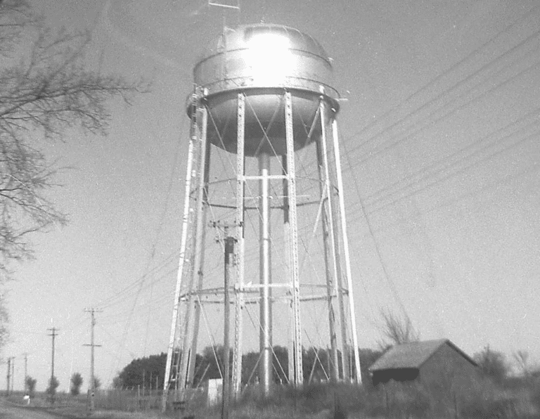 In 1961, a Clay Center water tower on north 7th Street was photographed from a vehicle. Today, houses span another four blocks north, with houses on