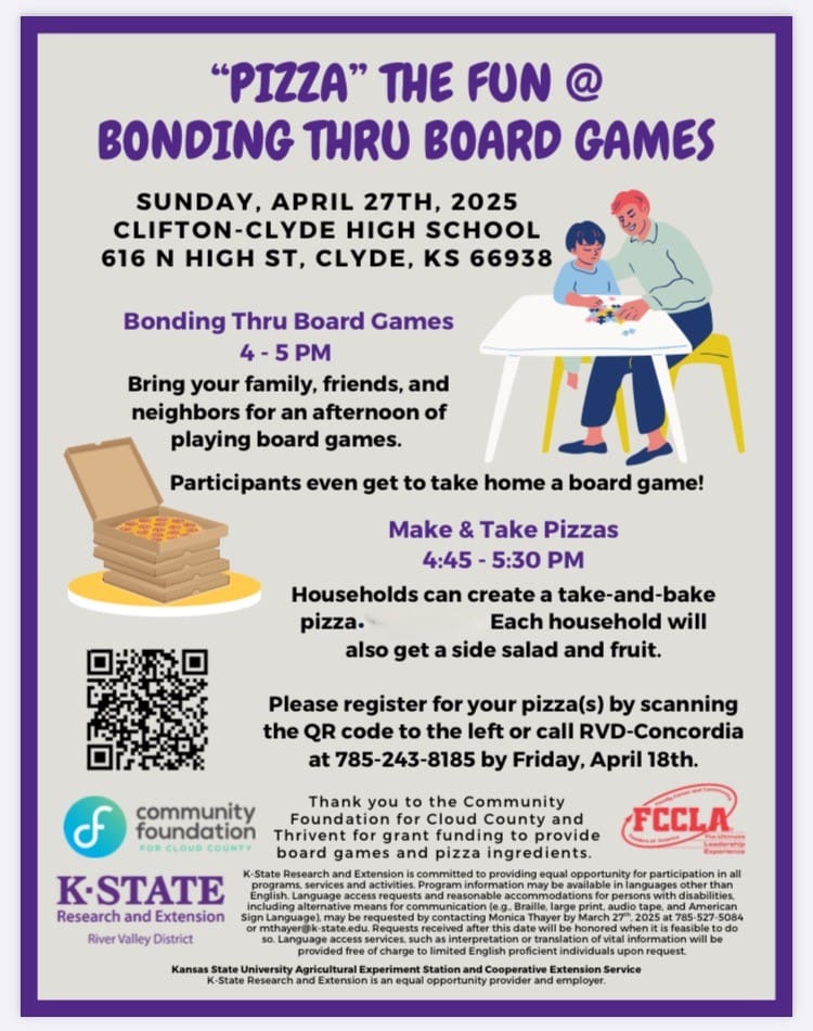 By: Ryan Duey On Sunday, April 27th the River Valley Extension District, in partnership with the Clifton-Clyde FCCLA group, will host a ‘PIZZA’ the Fun