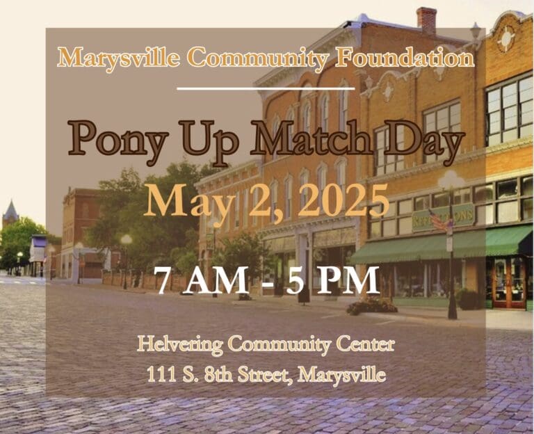 By: Ryan Duey The Marysville Community Foundation will hold its 9th Annual Pony Up Marysville Match Day on Friday, May 2nd. This annual event, held