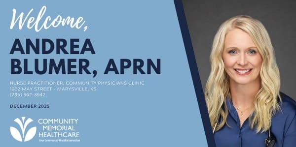 Community Memorial Healthcare Photo Courtesy of Community Memorial Healthcare in Marysville is pleased to announce Nurse Practitioner Andrea Blumer will join Community Physicians Clinic beginning
