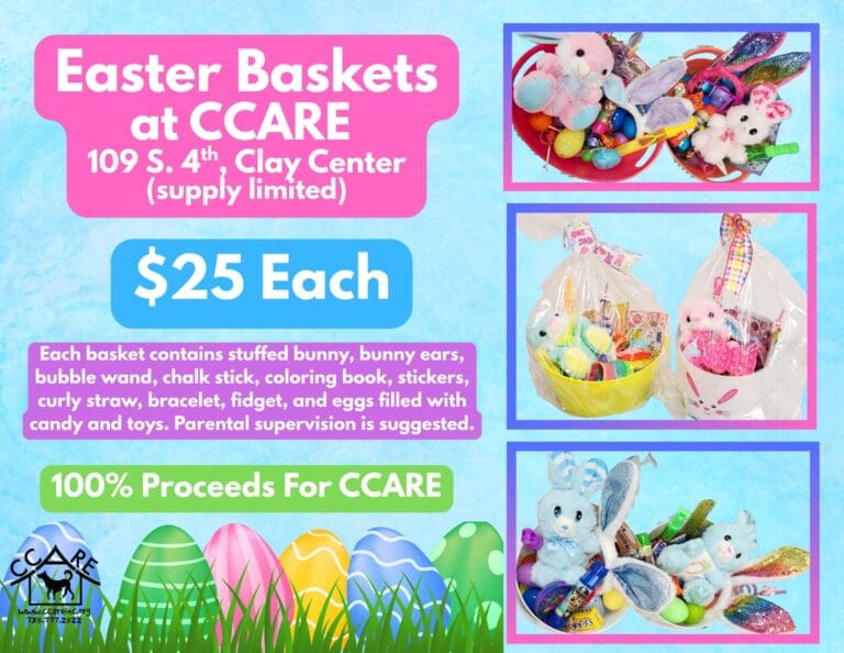 By: Ryan Duey Photo Courtesy of CCARE Clay County Animal Rescue and Education Center (CCARE) is hosting an Easter Basket fundraiser, with 100% of the