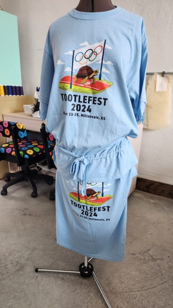 Business owners Cynthia Ensign of Cynthia’s Attic and Cyndy Monier of Einstein Sewing Workshop brought something new to Miltonvale’s Tootlefest this year: a T-shirt makeover contest.