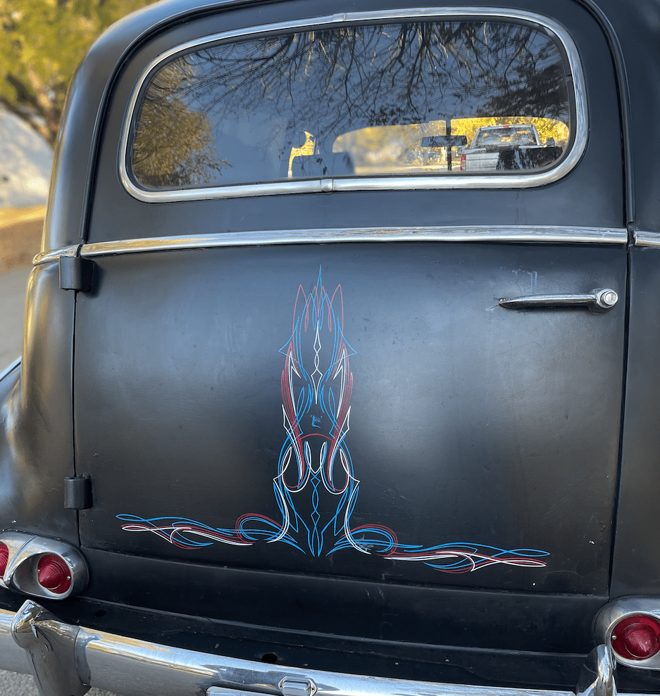 Adding that his daily driver is his work truck – he’s an estimator for McGee Roofing – the Delivery Sedan is kept on hand as a hobby driver.