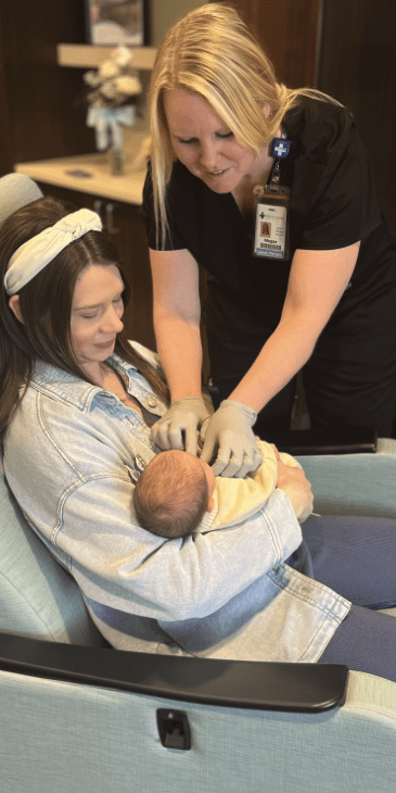 Next, Gfeller performs a test run, having Mom position the baby and bring them to feed. All the while, she answers questions from basic, to patient-specific. Families can also return after birth and visit with Gfeller for follow up breastfeeding visits.