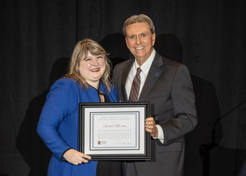 The Kansas Teacher of the Year program is sponsored by the Kansas State Department of Education, while the National Teacher of the Year program is presented by Voya Financial through the Council of Chief State School Officers.