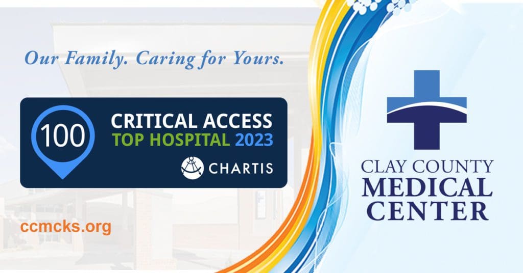 Clay Center, KS – Clay County Medical Center is pleased to announce it has been recognized as a 2023 Top 100 Critical Access Hospital! Compiled by The Chartis Center for Rural Health, this annual recognition program honors outstanding performance among the nation’s rural hospitals based on the results of the Chartis Rural Hospital Performance INDEX™.