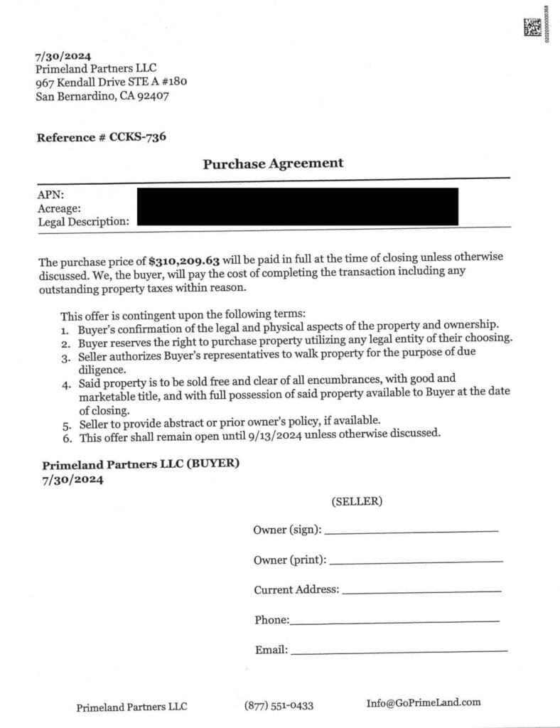 In a Facebook post on Wednesday, August 15th, Cloud County Sheriff’s Department announced that several citizens have received a letter from Carlos Ramirez with Primeland Partners with offers to purchase their land.