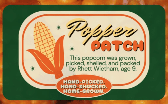 Rhett said he is saving money from the sales to buy animals for 4-H, with his eyes on a sheep. Popper Patch popcorn can be purchased in two-pound bags by contacting Joe or Jessica via phone or on Facebook.