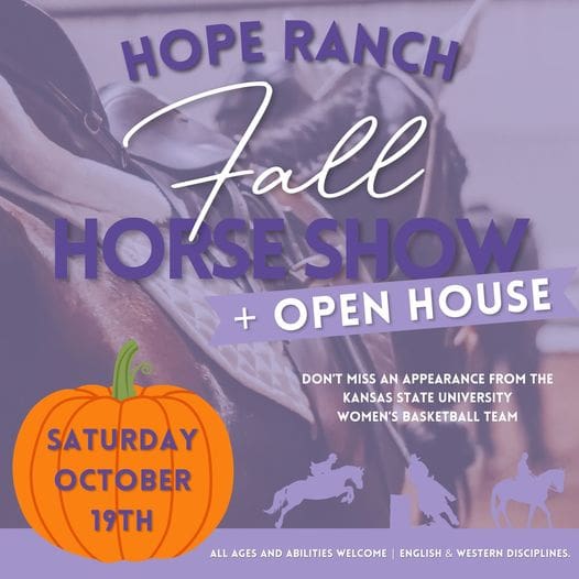 Hope Ranch Therapeutic Riding Center, a nonprofit organization that offers therapeutic riding lessons to people with a wide array of disabilities, will host its Fall Horse Show and Open House on Saturday, October 19th starting at 8:00 a.m., on their Ranch outside of Manhattan.