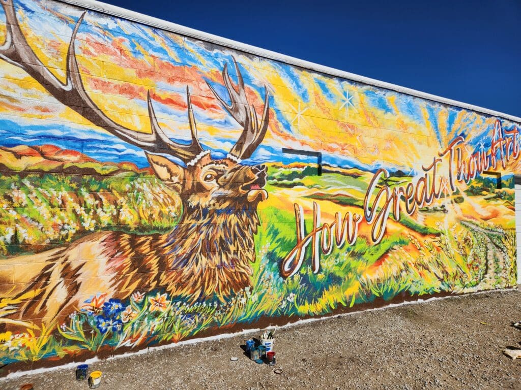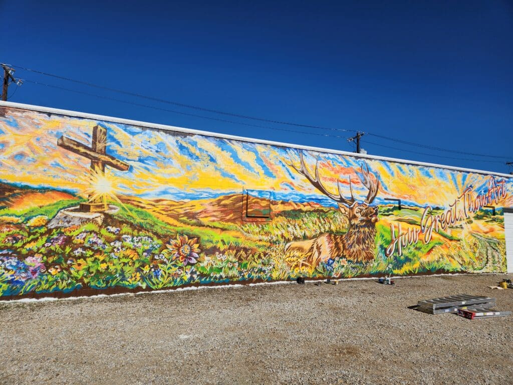 The new artwork is positioned across the street from the Prairie Thunder mural, also completed