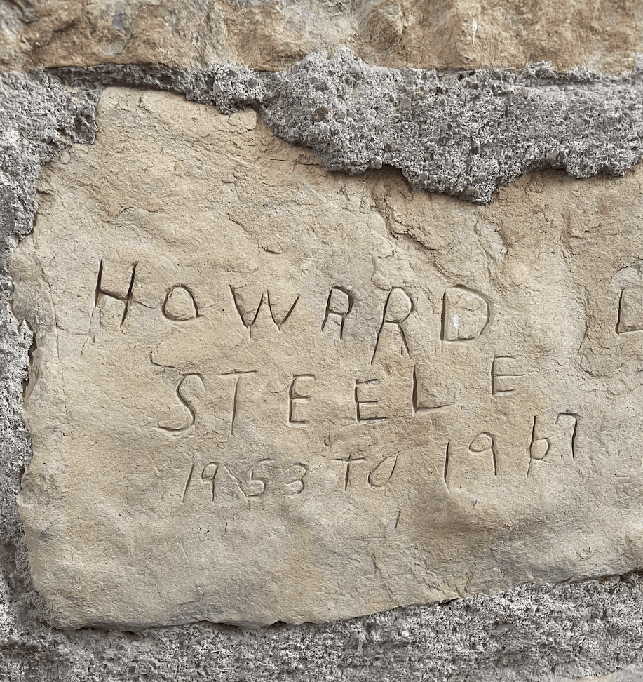 “I thought about painting up here but then I thought it wouldn’t be very nice to cover up all that history,” he said of the signatures. Names dating back to the early 1900s are drawn in bold, black marker. One is engraved on a limestone’s interior.
