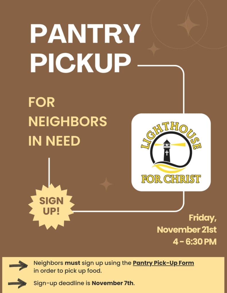 Lighthouse for Christ has planned a Pantry Pickup event for families in Clay County to help those who are without SNAP benefits for the month of November.