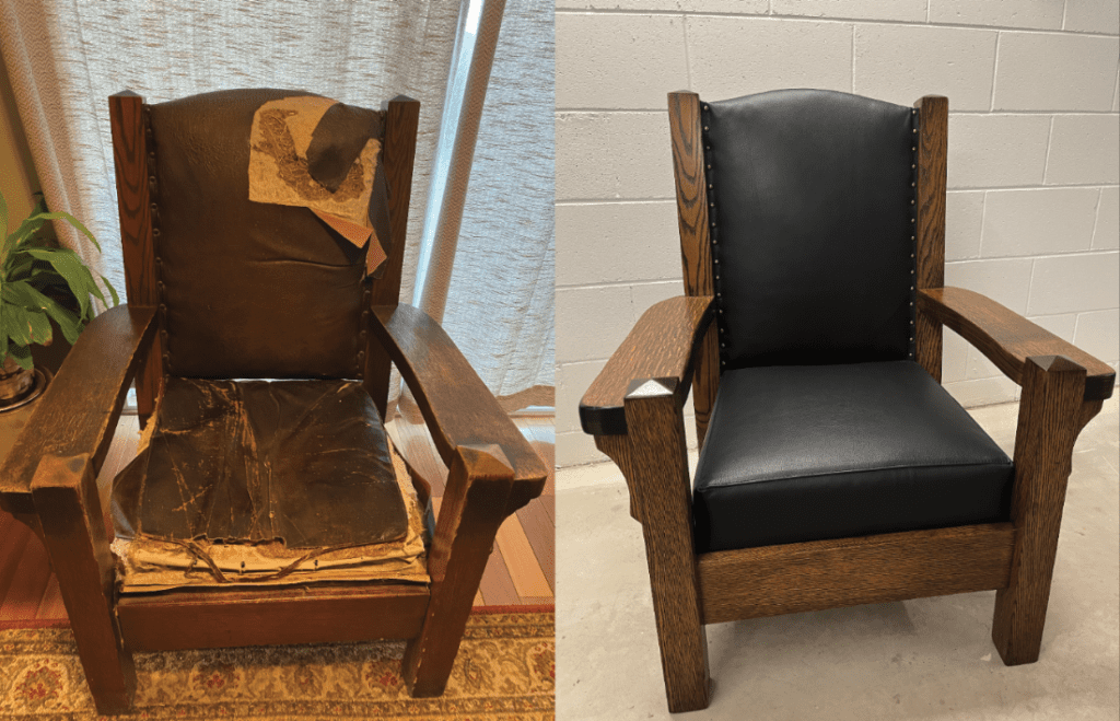 When a family heirloom needed to be restored to its former shape, Amy Glaves began researching local craftsman. The chair in question had been in the family for decades, and needed work with its fabric, rockers, and the show wood that rounds out the rocking chair’s former charm.