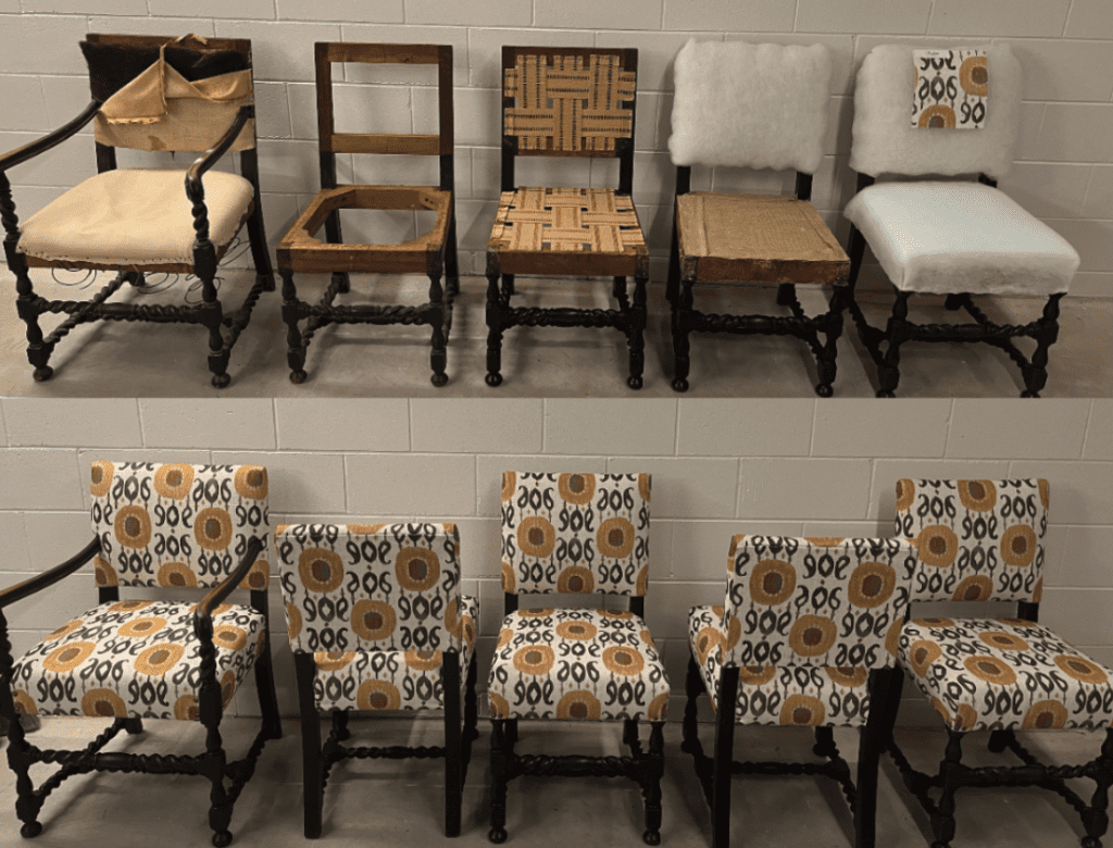 However, what Glaves found is that upholstery – the art of recovering fabric and restoring furniture – is a dying art. Those who practice take on little new work, and most are older, making the hand work difficult to continue.