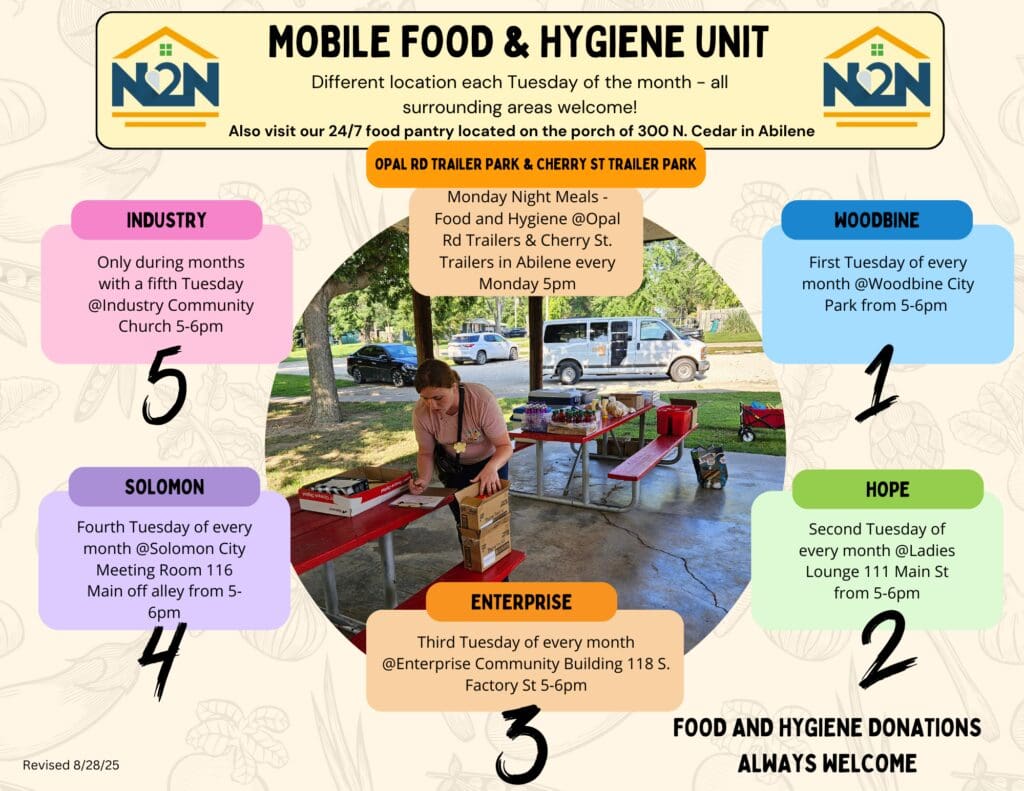 “We take our mobile food and hygiene unit out to two trailer parks here in Abilene and deliver Monday night meals whether it’s provided by the community dinner and we deliver it, or if it’s provided by us,” Robinson said.