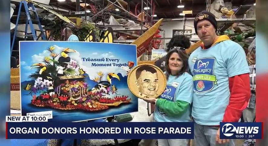 KWCH’s Thomas Lynch recently reported that Stacy’s donation will be honored during the Rose Parade New Year’s Day on the Donate Life float from One Legacy. He will be one of 29 floragraphs, photographs recreated using flowers and plants, on the float. All of the floragraphs are in honor of organ donors and Stacy was nominated by Midwest Transplant Network. His mother, Linda Isaac, has worked closely with Midwest Transplant Network since Stacy’s death and credits the organization with helping her cope.