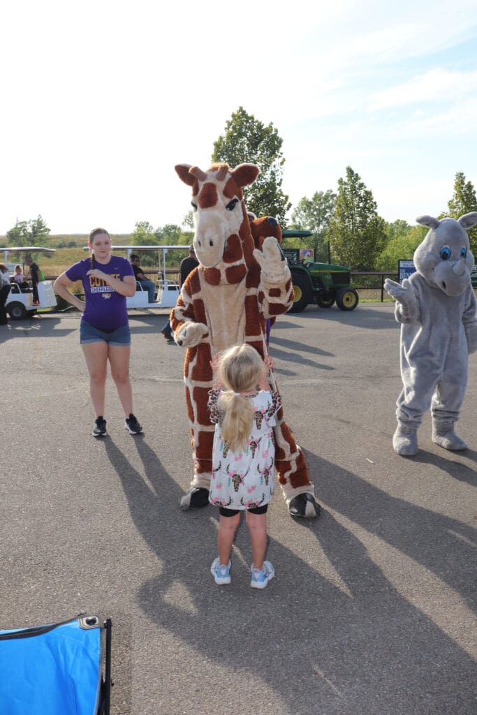 Upon arrival, volunteers welcomed each VIP child and their families with a special keepsake bag filled with a plush animal, water bottle, animal-themed hat, and other surprises. Zoo mascots George the Giraffe and Rowdy the Rhino, along with Kansas Wesleyan University’s Casey the Coyote, greeted guests and posed for photos. A giant bubble maker and the Salina Selfie Station added even more fun to the evening.