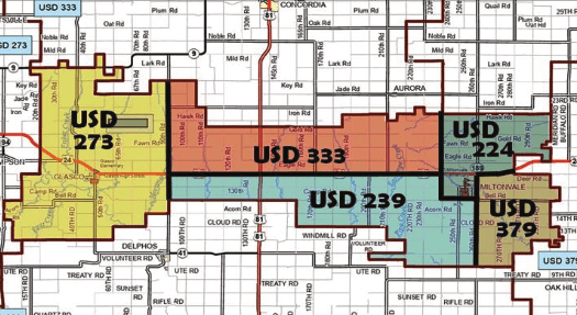 USD 379 will accept a portion of the district’s former jurisdiction and Board member territory may be adjusted if the addition creates an imbalance of more than 5% of the population that a member serves.