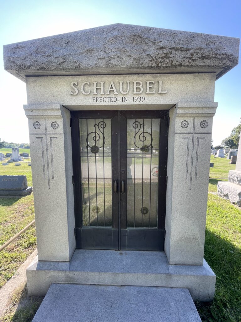 Rather than follow his parents’ footsteps as sexton, William Jr. went into the monument business. By 1906, he was working under Clay Center Granite and Marble Works on Court Street in the former Gollober garage. It was also listed as Monument Works or just Schaubels Monuments.
