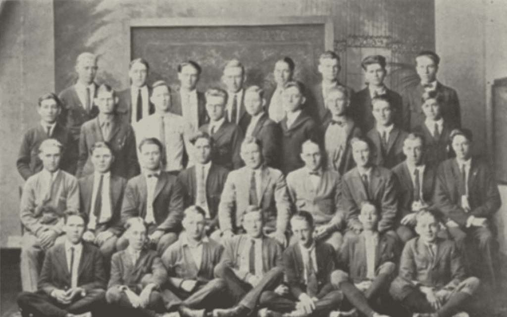 Prior to this, CCCHS maintained a Vocational Agriculture Society, known as Ag Society. The group is believed to have started in 1919 by Wesley G. Bruce. Students spent one half of each school day studying ag, including soils, crops, animal husbandry, and farm management. Two-fifths of their time was spent in the farm shop. In addition, students built a poultry house that was 20×30 feet and housed laying hens. Students were also to care for baby chicks. A carload of dairy heifers were delivered to students to care for during the school day.