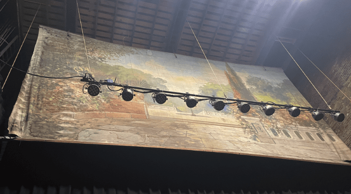 An original backdrop still remains overhead for safe keeping, said theatre manager, Renee Langvardt. It holds signatures of former cast mates and the theatre has pictures where its design was used.