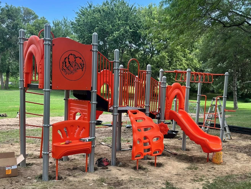 This week, new playground equipment was installed at Tiger Terrace in Clay Center. Located between 9th and 10th Streets on Huntress Street, the five-acre park is now open for play. The playground equipment joins an existing playground, benches, picnic tables, and a large grass section with soccer goals.