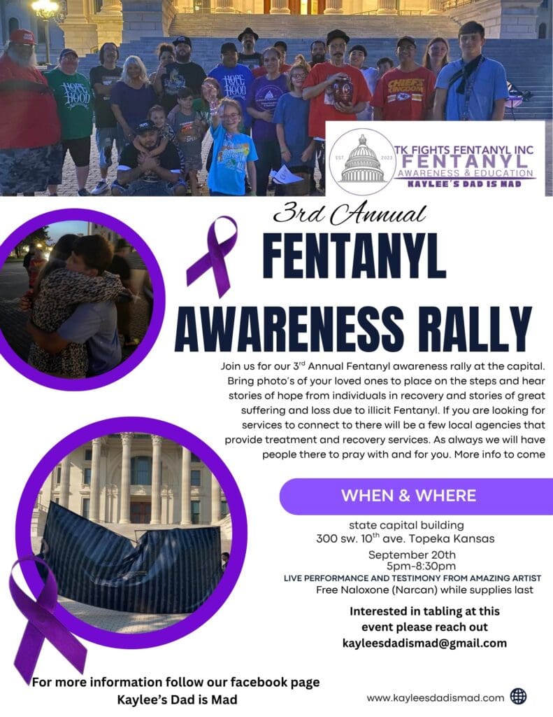 The organization hosts public awareness events, including a memorial wall unveiling at the Kansas Capitol this Friday, August 29, a TKF Bingo fundraiser on September 13th, and the third annual Fentanyl Awareness Rally on September 20.