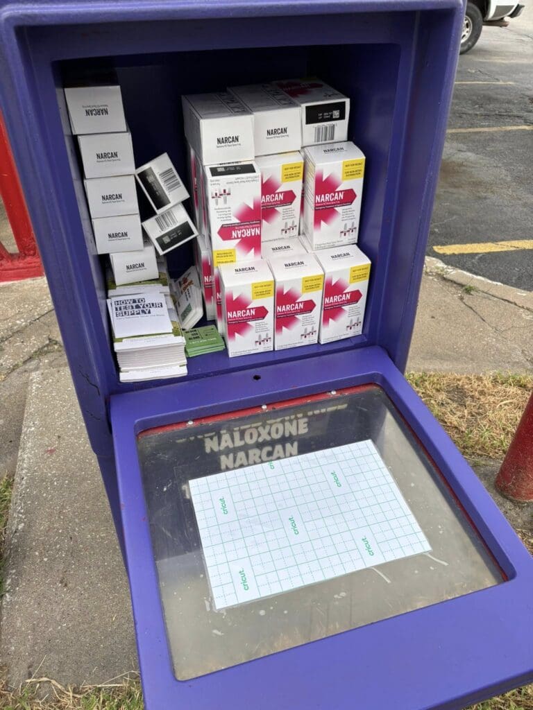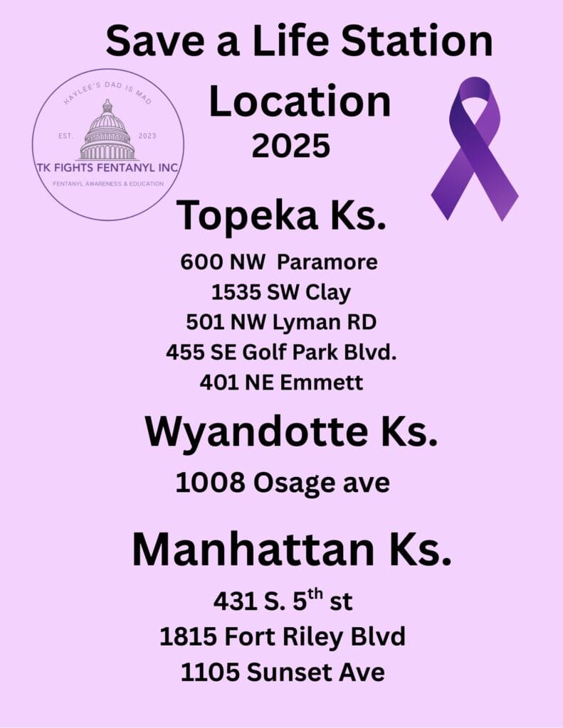 The most recent station was installed at Kansas State University in Manhattan. Each station is stocked with naloxone, drug test strips, local mental health resources, and local contact information for substance use treatment. “We also put information on how Naloxone is good for 30 years past its expiration date and what to do if it freezes or if it’s too hot,” Amber said. “Just anything we feel that can be impactful or helpful.” She said they “want to make it as easy as possible. No barriers for people to reach out to get the help they need and deserve.”
