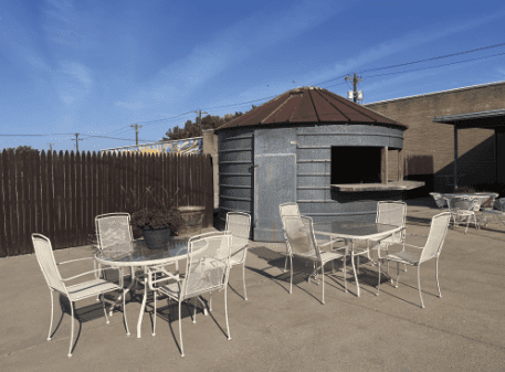 An outdoor space is called the Heritage Patio, with the Garage Bar sitting between the two.