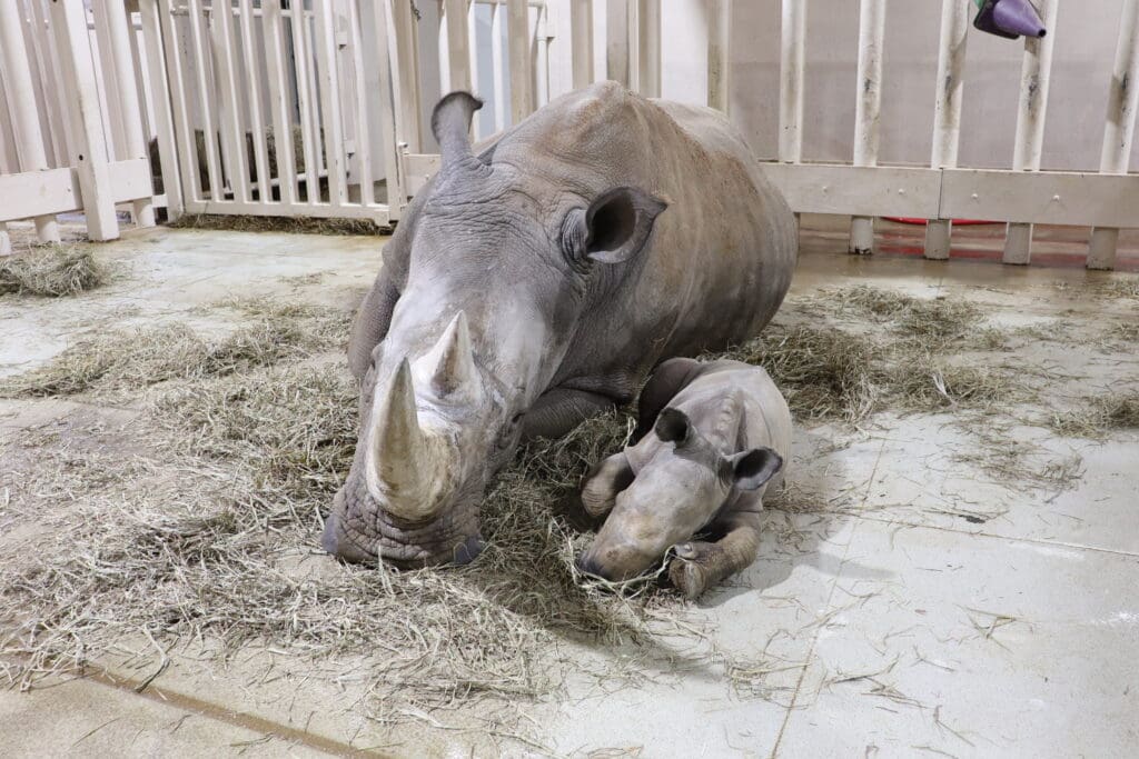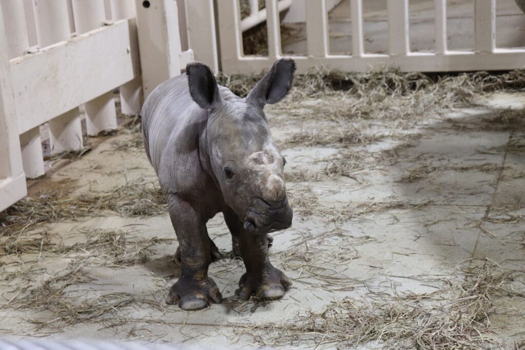 While the calf has not yet been weighed, Echevarria said white rhinos typically weigh between 100 and 200 pounds at birth. He is expected to nurse for about a year and may stay with Evie for two to four years. Adult males can eventually reach 4,000 to 6,000 pounds. “He’s already developing and is comparable to a big puppy with how he acts with his mom,” he said. “While mom was trying to nap, he was trying to climb on her like she was a mountain. It’s fun to watch and it’ll be exciting when guests get to come out and see them. It’s such an opportunity for them to bond with the animals and fall in love with them and be more engaged in trying to figure out what they can do to help them.”