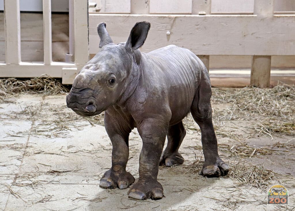 On February 8, the Rolling Hills Zoo welcomed a newborn male white rhino calf, born to parents Evie and Kengele. The calf is off to a good start, according to animal curator, Mark Echevarria. “He’s up and down nursing, running around, and he’s doing really well.”