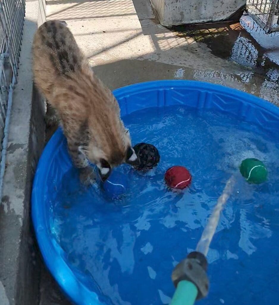While Sorell admits it is hard to pick a favorite, she really enjoys watching the ring-tailed lemurs work their puzzle feeders and the African Serval fish in its swimming pool, practicing its natural behavior of catching fish.