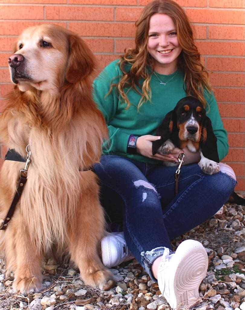 Two service dogs currently work at Clay Center Community High School, alongside a therapy dog. Blackwood has hosted two service dogs in training herself, taking them with her to classes and school events.