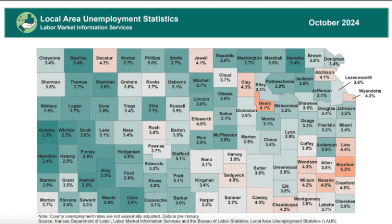 Preliminary estimates reported by the Labor Market Information Services (LMIS) division of the Kansas Department of Labor (KDOL) and the Bureau of Labor Statistics (BLS)
