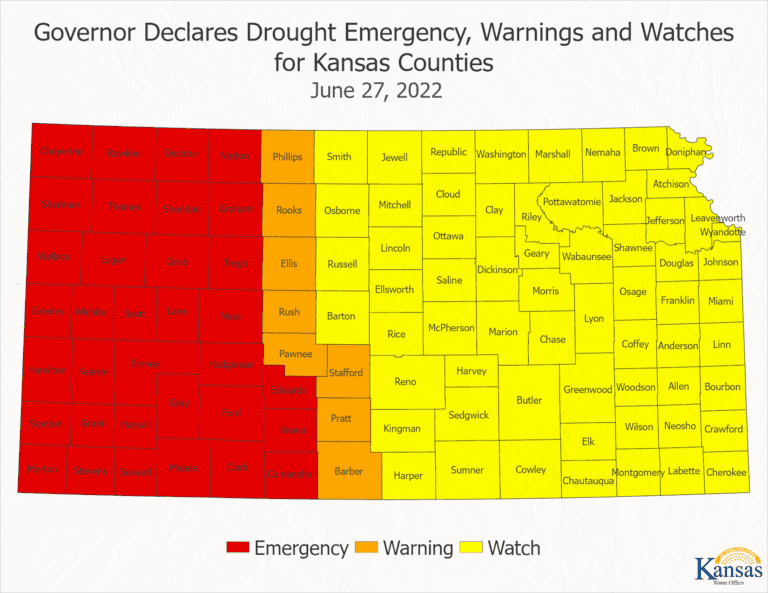 Governor Declares Drought Emergency, Warnings and Watches for Kansas Counties