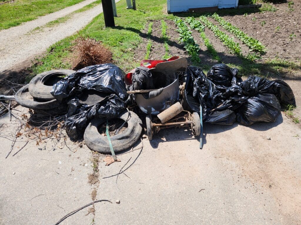 An effort by the Clay Center and Manhattan Masons Lodges recently pulled 300 lbs. of garbage out of a two mile stretch of Huntress Creek in Clay Center.
