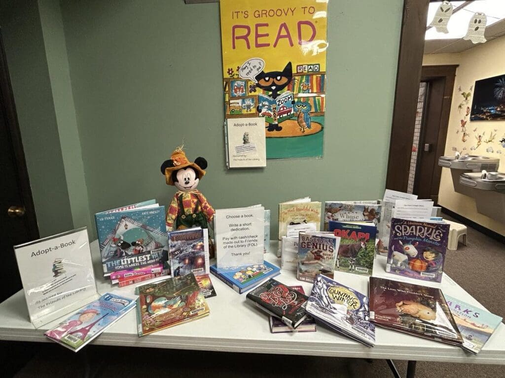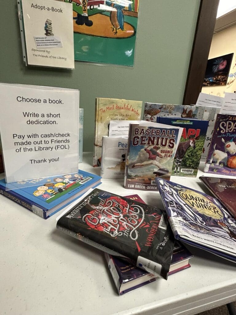 Books available for adoption are all children’s books, such as nonfiction, picture books, chapter books, and easy readers. Knepper said that the library added adult titles for the first couple of years, but the titles were not adopted and were costly. She explains how the fundraising part of the process works, “We have selected books that we needed or wanted for our collection in advance. The Friends of the Library sponsor this program and gave us the money to purchase the books. Our books are purchased at a slightly discounted price. These books are then sold at the full price. For each book, the Friends of the Library earns $5 to $6 per book adopted. There are 38 books this year, which helps us get more books for the Library’s collection.”