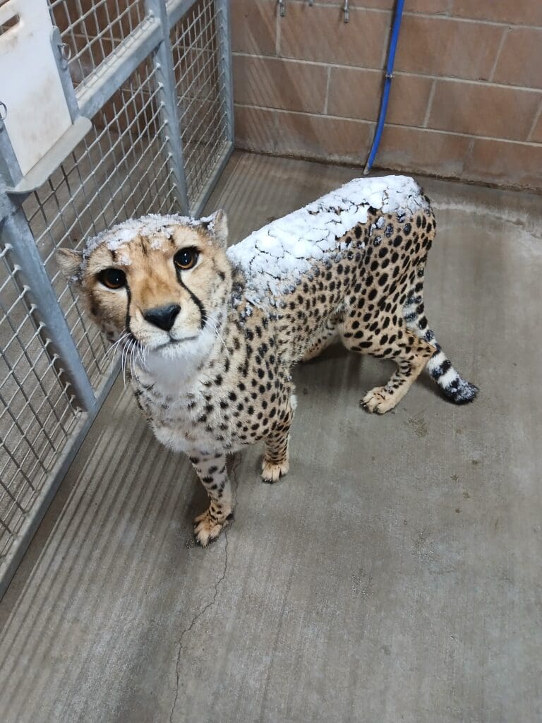 “I would open their door and let them outside while I was in there cleaning and I mean, they were out there in that blizzard just having an absolute blast, just running in that snow and playing. I had to go make the cheetahs come inside. They came in just completely covered in snow, from the tip of their nose to the tip of their tail.”