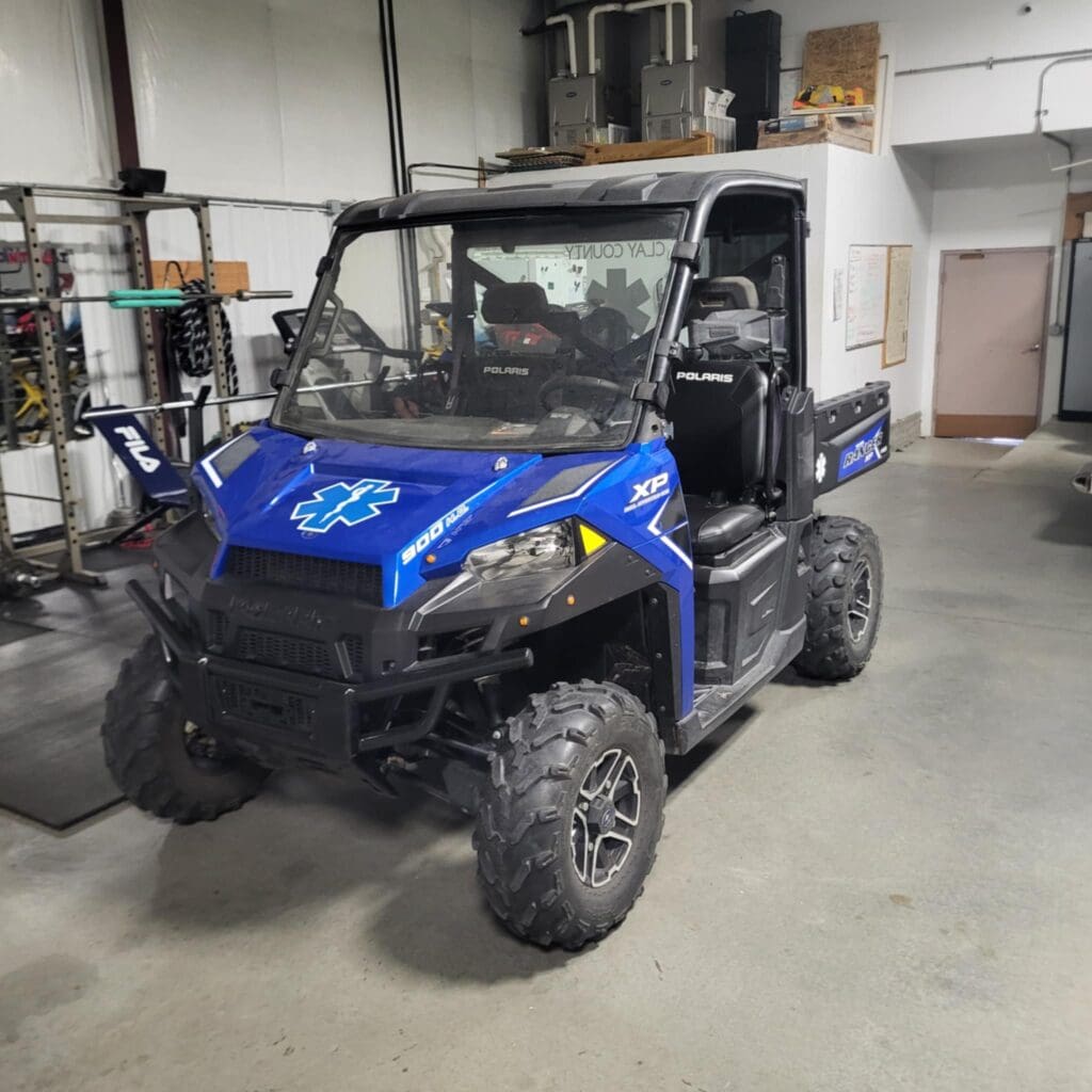 Clay County Emergency Medical Services recently purchased a Utility Task Vehicle (UTV) to add to their fleet. Emergency Medical Services Director Alec Trembath explains how the vehicle will be used, “We use the UTV for standbys and places where crowds are gathered or areas that might be difficult for us to get to with an ambulance. With the UTV, we’re more visible. You know, they can see us coming a little bit better. Also, you know, if we were to respond, just on foot with things, we we’d have to maybe kind of pick and choose what equipment we would bring with us.”